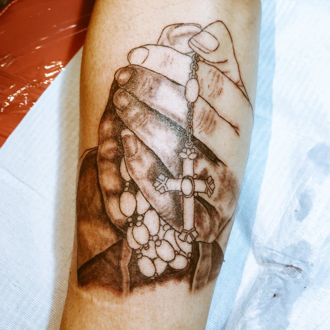 祈り手とロザリオ リアル仕上げタトゥー 刺青デザイン タトゥー 刺青 和絵柄は Mandara 名古屋 岡崎 知立 安城 豊田 刈谷 西尾 蒲郡 愛知